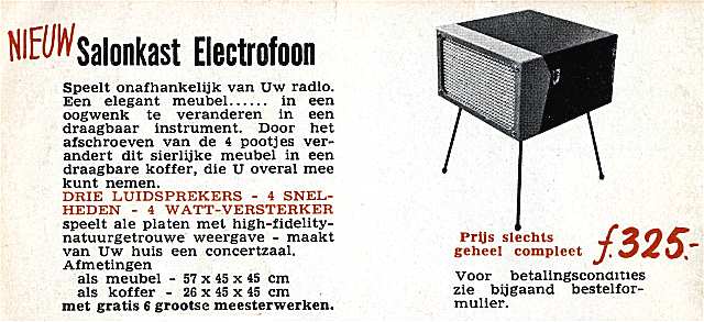 Hierbij even een reactie bij het zien van de MMS grammofoon op de site. Vroeger was dit onze grammofoon, waarmee het allemaal is begonnen. Naast ons Draadomroep abonnement was deze pick-up koffer een welkome aanvulling bij het genieten van de klassieke muziek thuis. Mijn vader vond het nodig om maar eens een grammofoon aan te schaffen en hij viel voor deze bijzonder prettig geprijsde aanbieding. Een advertentie achterop de toenmalige V.P.R.O. gids, waarbij deze MMS-pick-up koffer werd aangeboden met een gratis 25 cm langspeelplaat. Die heb ik nog in bezit.