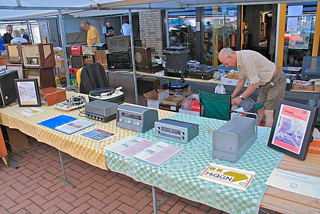 Alle 15 beschikbare kramen waren verhuurd. Enkele late aanmelders moesten helaas teleurgesteld worden. De tafels stonden vol met allerhande aanbod: grammofoons, radio’s, vinyl, schellak, onderdelen, boeken etc. Ook informatieve stands van vereniging de Weergever, de Beofriends en de HifiGN waren vertegenwoordigd.
