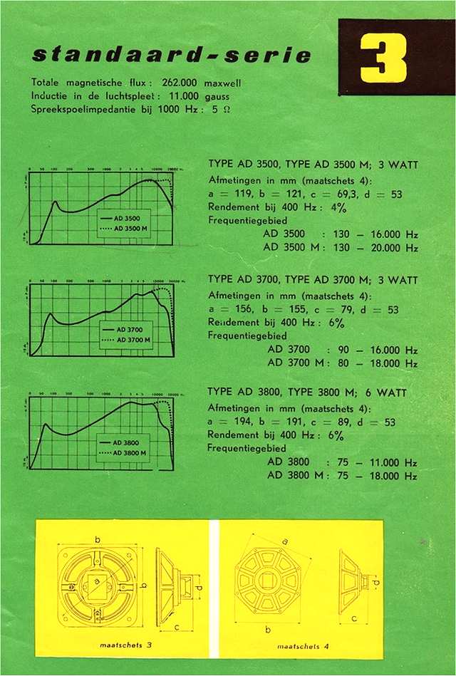 Philips brochure uit 1954-1955 met voornamelijk breedbandluidsprekers.