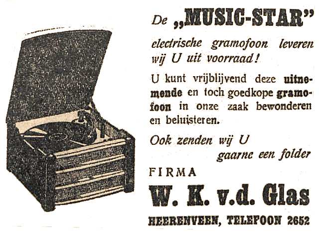 Na de introductie in een aantal dagbladen begin 1948 van de Music-Star D1001 grammofoon volgde eind 1949 een prijsdaling tot Hfl 75.