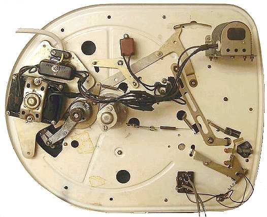 Echter, na een half uur had de platenspeler er geen zin meer in. Eerst dacht ik dat de motor het had begeven of wellicht de Reostaat (draadgewonden potentiometer). Dat was het gelukkig niet, maar lag het euvel ergens bij de lichtnetschakelaar. Deze zag er na demontage nog erg vuil uit. Kontakten schoongemaakt en ietsje krapper afgesteld (is verbogen) waardoor het pertinax plaatje met het ronde contact er beter doorheen schuift. Kapje er weer op en de patiënt was gereanimeerd. Wederom aangesloten op de Hi-Q set werkte alles naar behoren en hebben we uren prachtige plaatjes gedraaid, voornamelijk singeltjes uit de oude doos. Na een heerlijke huisgemaakt Chinese maaltijd toog ik die dag weer huiswaarts. Enkele dagen later kreeg ik een mail van René dat de motor na het uitschakelen door bleef draaien. De volgende zondag dus weer afgereisd naar Hoorn om het probleem te gaan onderzoeken, want een permanent draaiende motor was natuurlijk niet de bedoeling. Na bestudering van de Service Instructions kwam ik uit op de Switch Click Processor... Tja , dat werd studeren op het chassis. Er stond een code bij en het leek op een condensator met een weerstand, aangesloten op de schakelaar. Ik heb die Switch Click Processor, bedoeld om eventueel het schakelgeluid via de versterker naar de luidsprekers te onderdrukken, na telefonisch overleg met Peter Boin ontkoppeld van de schakelaar, en na wat proefdraaien bleek het apparaat het weer prima te doen. Er werden geen plofgeluiden geconstateerd, dus René kan weer genieten van zijn oude platen, voornamelijk jazz en klassiek.